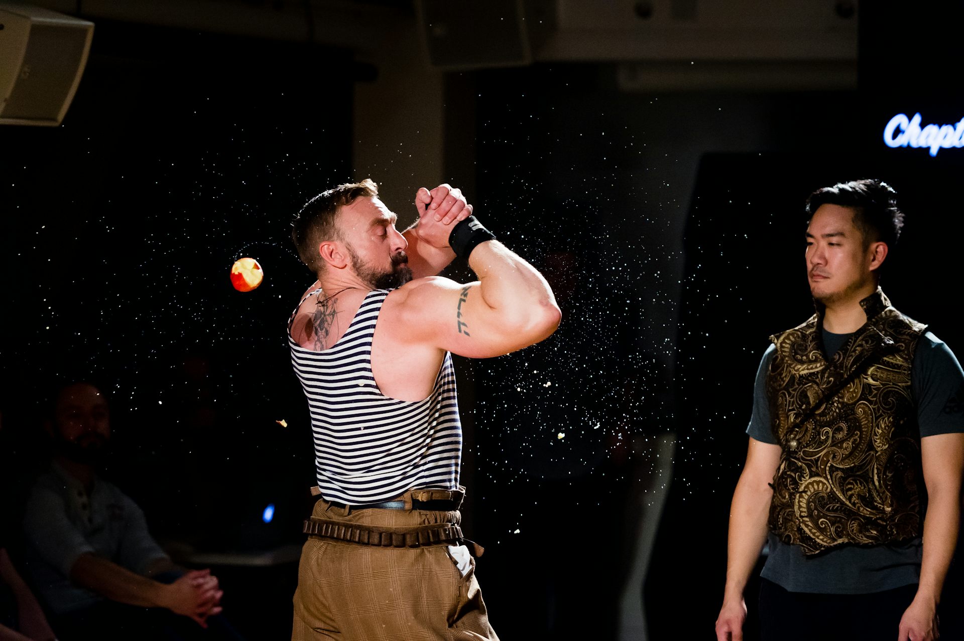 So presenting manly ideals on a stage as entertainment exposes them as cultural scripts rather than as an expression of some authentic “toxic masculinity”. I believe that by presenting them in their original context as entertainment these scripts are robbed of their power – and with this in mind I recently directed the Dynamic Tensions Physical Culture Show at Kings College London’s Anatomy Museum.